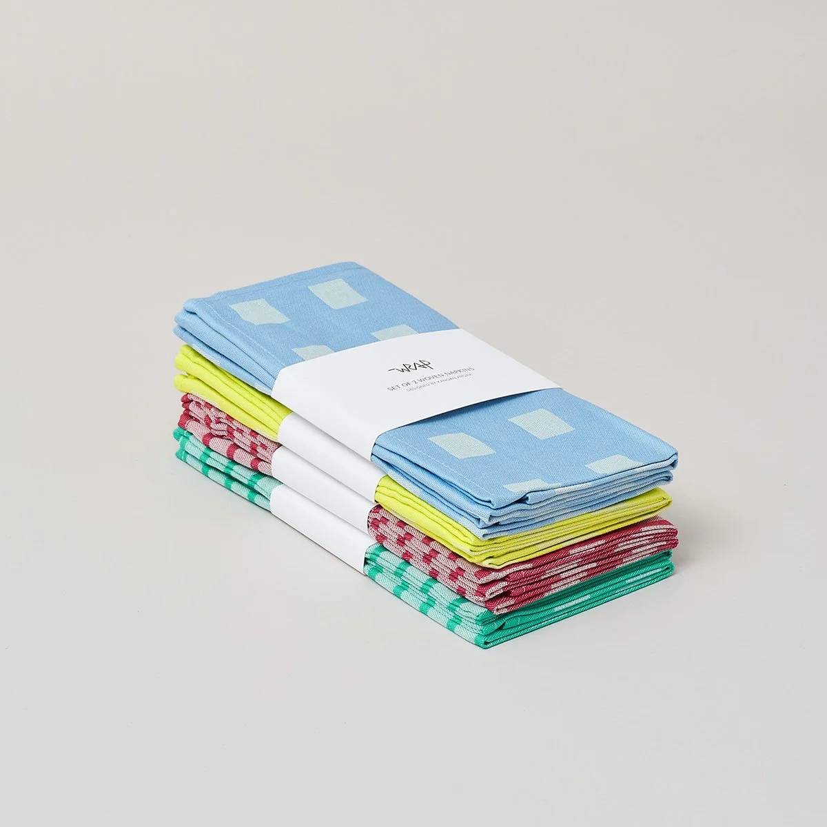 My colour palettes are developed from a library of colour I create specifically for each collection. The colours for my Wrap collection are gathered from the objects in the corner shops, as well as the shops themselves, which often have a riot of juxtaposed surfaces – painted walls, laminated floors, mismatched fixtures and fittings. The application of pattern across textiles and paper products allows for nuanced tonal variation of the same colours.